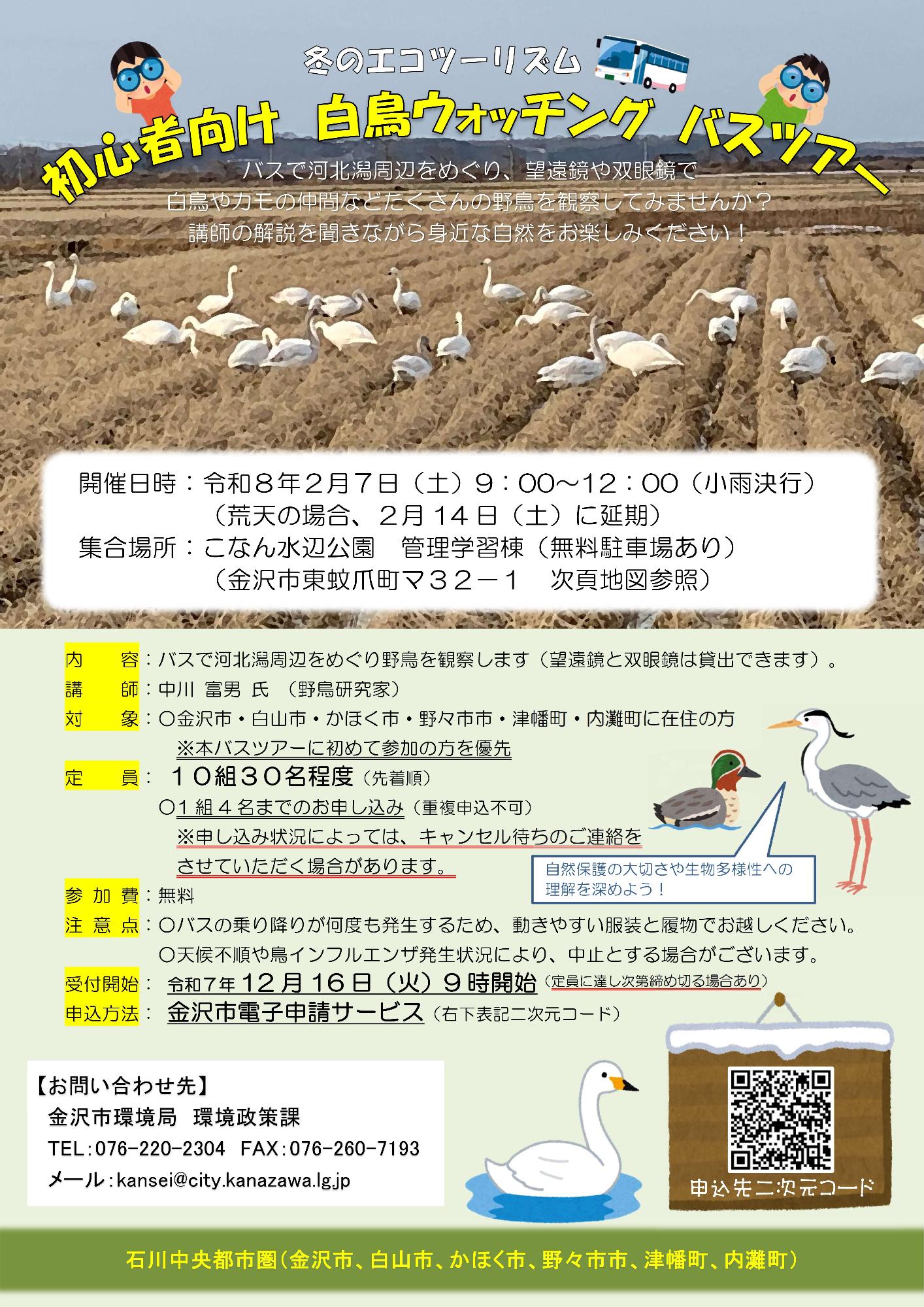 - 初心者向け白鳥ウォッチングバスツアー【R8.2.7(土曜日)開催】