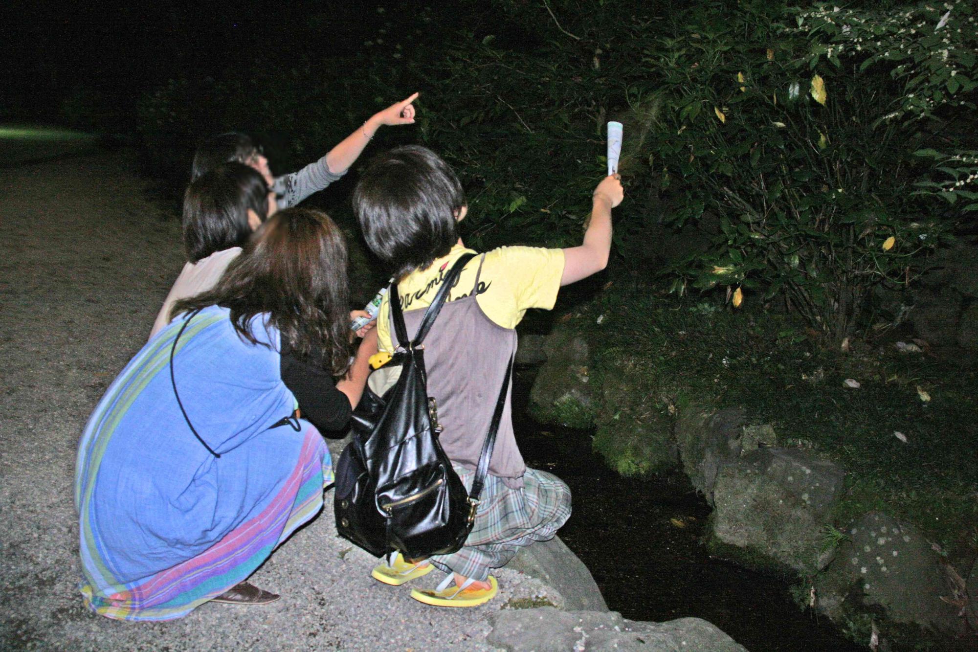 イベント時は白鳥路の園路内をライトダウンしますので、ホタルの幻想的な世界を楽しんでいただくことができます。