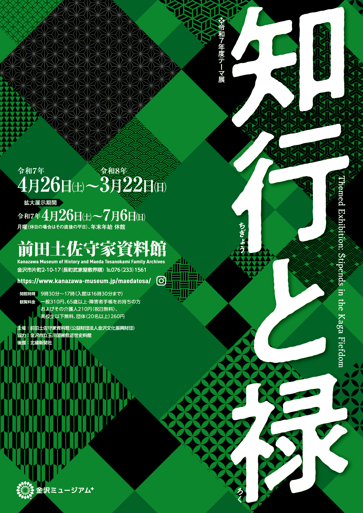 金沢や加賀藩の歴史を毎年異なるテーマで掘り下げる展示です。第1回となる今回は、武士身分の基本であり、彼らの給与ともいえる「知行と禄」について紹介します。 ◆関連事業◆ ・時 間:10:00~11:00,13:30~14:30 ・場 所:前田土佐守家資料館 ・講 師:学芸員 岡野 有里香 ・定 員:各回25名(事前申し込みが必要、先着順) ・費 用:入館料のみ ・申 込:4月26日(土曜日)10:00開始 ・申込先:電話番号(076)233-1561/ファックス番号(076)261-0806 |