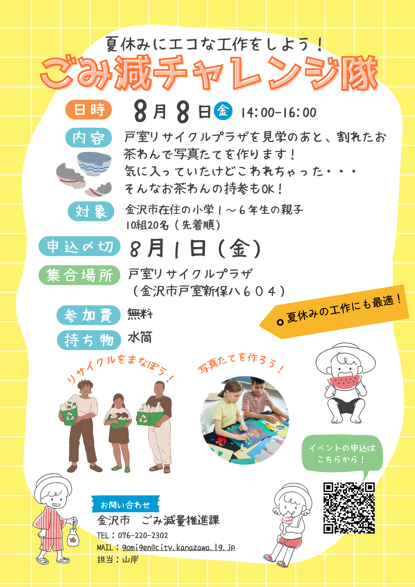 8月8日開催!ごみ減チャレンジ隊減らそう埋立ごみ編参加募集チラシ
