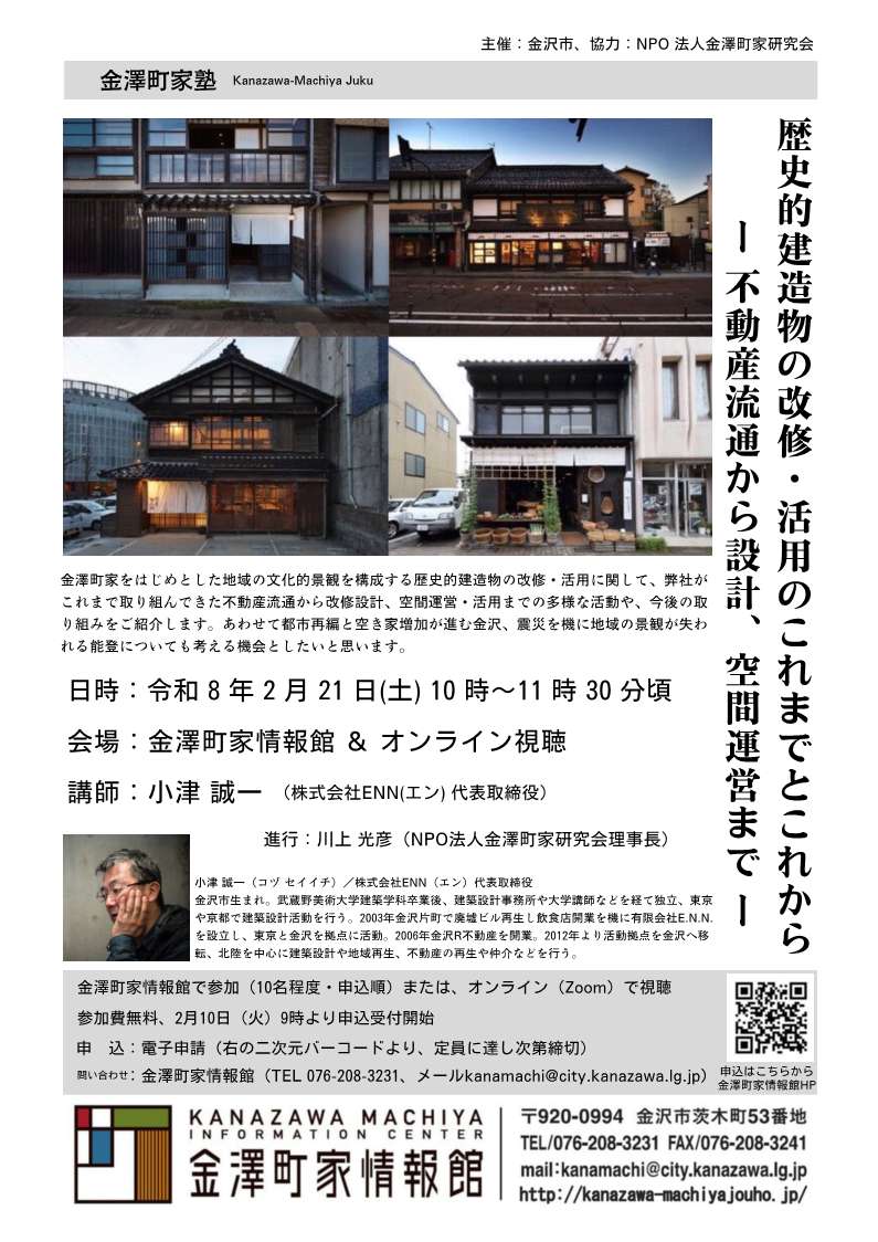 場所 :金澤町家情報館で参加、またはオンライン(Zoom)で視聴