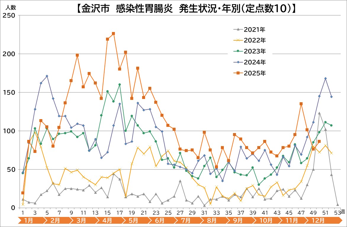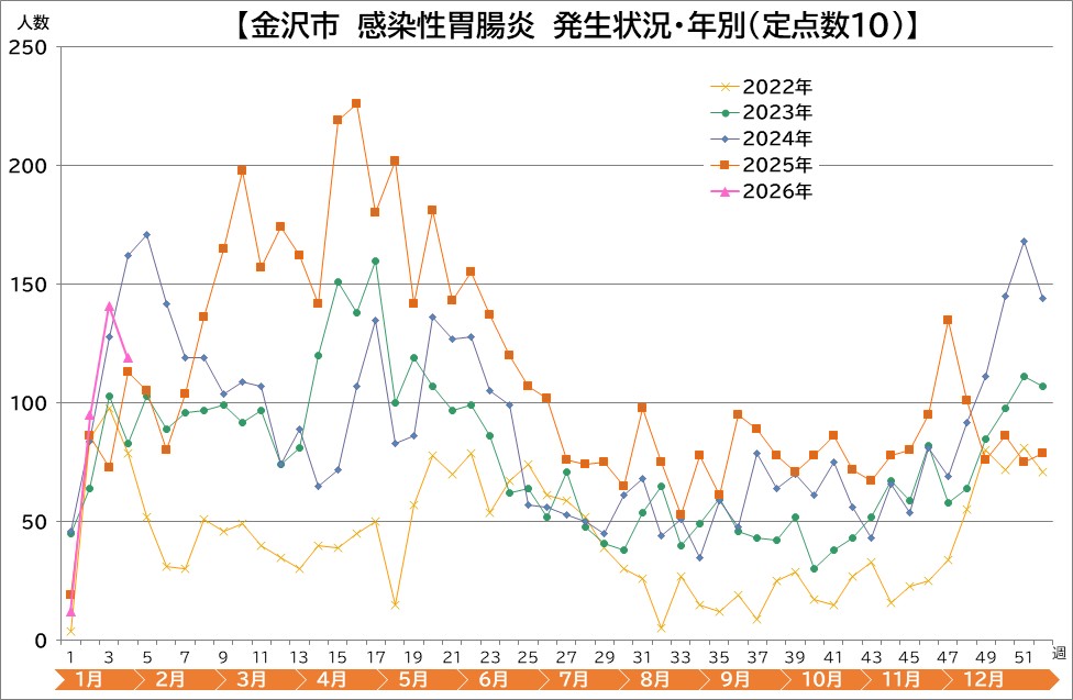 ※報告数の中には、インフルエンザやCOVID-19、RSウイルス等に該当する患者も含まれます。