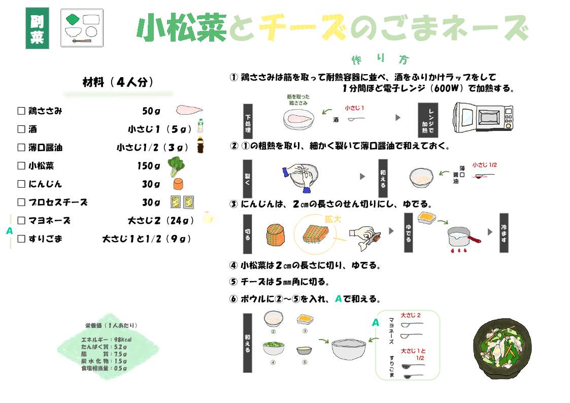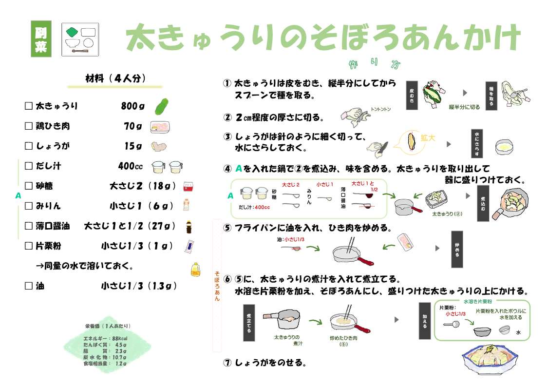食育お役立ちレシピ Tweet ミッション食育グループ×地域保健課 野菜がもっと好きになるレシピ1(PDFファイル:4.6MB) 野菜がもっと好きになるレシピ2(PDFファイル:6.5MB) 野菜がもっと好きになるレシピ3(PDFファイル:4.6MB) 金沢ゆず・金沢春菊のおいしいレシピ(PDFファイル:7.3MB) さかなレシピ集(PDFファイル:1.9MB) 食生活改善推進協議会×地域保健課 かんたんバランスレシピ 主食 金時草のごはん(PDFファイル:145.2KB) 押しずし(PDFファイル:254.2KB) 菜めし(PDFファイル:156.8KB) さつま芋ごはん(PDFファイル:174.1KB) 桜えびごはん(PDFファイル:124.4KB) 黒豆ごはん(PDFファイル:192.5KB) じゃことわかめのいためうどん(PDFファイル:399.3KB) 主菜 鶏肉の治部煮(PDFファイル:174.6KB) 甘えびの具足煮(PDFファイル:216.2KB) れんこん入り和風ハンバーグ(PDFファイル:379.9KB) 牛肉とごぼうの炒め煮(PDFファイル:208.2KB) 大豆のチリ風(PDFファイル:195.2KB) 納豆と卵のおやき(PDFファイル:204.6KB) 魚のごまみそ焼き(PDFファイル:177.2KB) いわしの蒲焼き風(PDFファイル:243.2KB) 豆腐と麩のグラタン(PDFファイル:234.8KB) 副菜 なすのそうめんかけ煮(PDFファイル:166.6KB) 車麩の卵とじ(PDFファイル:170.6KB) 太きゅうりのそぼろあんかけ(PDFファイル:481.2KB) 切り干し大根と桜えびのおやき(PDFファイル:249.4KB) ごまごまサラダ(PDFファイル:200.3KB) れんこんサラダ(PDFファイル:196.7KB) 小松菜とチーズのごまネーズ(PDFファイル:440.3KB) かぼちゃと根野菜の牛乳煮(PDFファイル:225.8KB) 汁物 さつま芋入りめった汁(PDFファイル:242.3KB) 加賀れんこんの米粉団子汁(PDFファイル:232KB) デザート えびす(PDFファイル:290.3KB) ミルクくずもち(PDFファイル:146.9KB) かぼちゃの茶巾絞り(PDFファイル:190.3KB) チーズドッグ(PDFファイル:179.9KB) さつま芋ようかん(PDFファイル:285.7KB) 地元の食材を使ったレシピ 新じわもんで健康づくり(PDFファイル:4.4MB) 新じわもんで健康づくりVol2(PDFファイル:13.1MB) その他のレシピ 「朝食を食べよう」元気な1日のはじまり(PDFファイル:583.3KB) 「伝えたい味」じわもん料理集(PDFファイル:459.8KB) Caむ噛むレシピ集(PDFファイル:2.8MB) ”作ってみまっし”かんたん料理パート1(PDFファイル:222KB) ”作ってみまっし”かんたん料理パート2(PDFファイル:290.7KB) 作ってみまっし 食べてみまっし 簡単手づくりレシピ集(PDFファイル:3.9MB) この記事に関するお問い合わせ先 地域保健課郵便番号:920-8533住所:金沢市西念3丁目4番25号電話番号:076-234-5102ファックス番号:076-234-5104お問い合わせフォーム