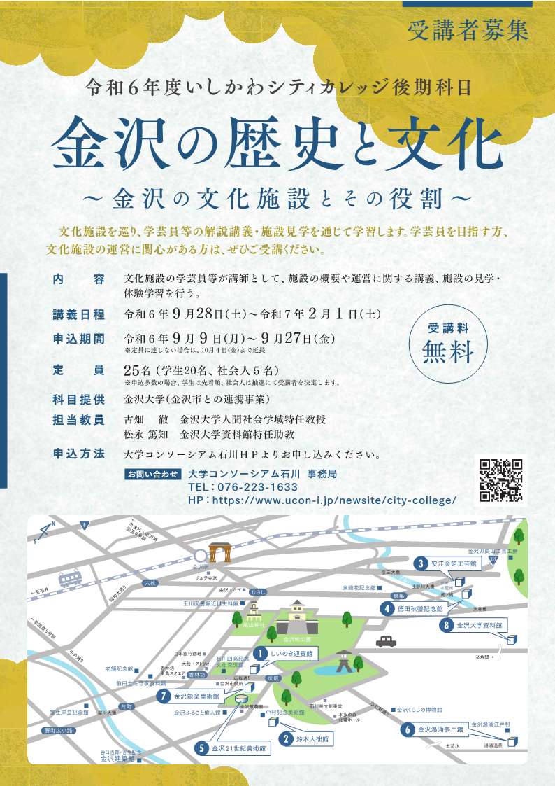 (大学コンソーシアムのシティカレッジ「金沢の歴史と文化」として開講)