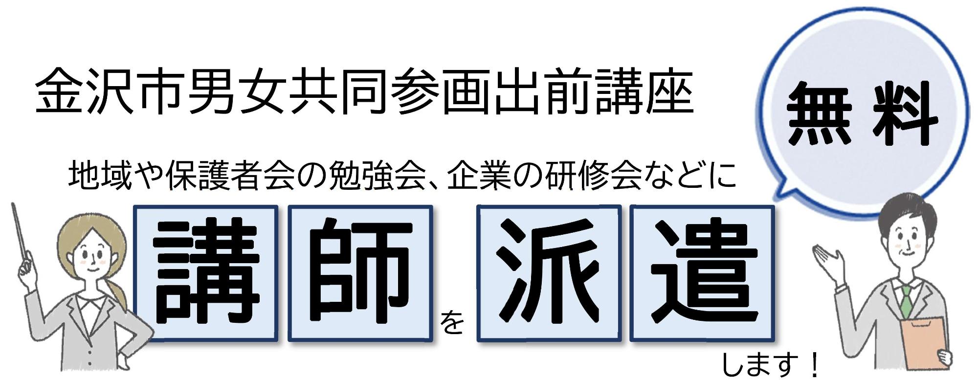 金沢市では、男女共同参画を推進するため、市民の学習会や研修会などへ講師を派遣する「出前講座」を実施しています。