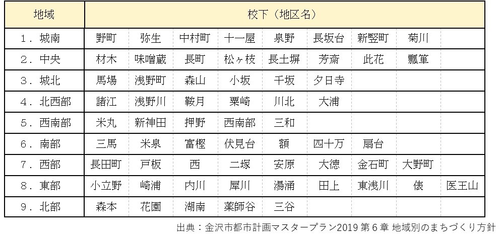 お住まいの校下(地区)が所属する地域のデータをご覧ください。