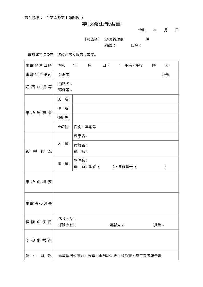 (届出先)金沢市道路管理課 電 話 番 号:076-220-2319 ファックス番号:076-220-2274 Eメール:dourokanri@city.kanazawa.lg.jp |