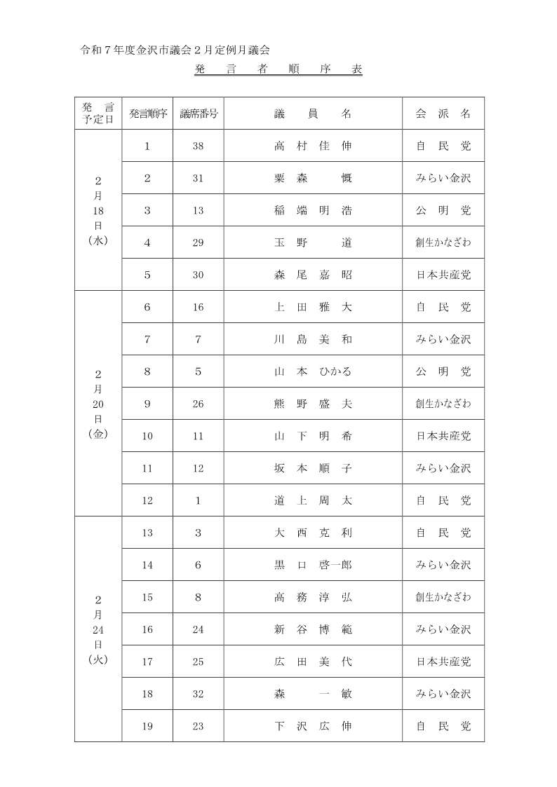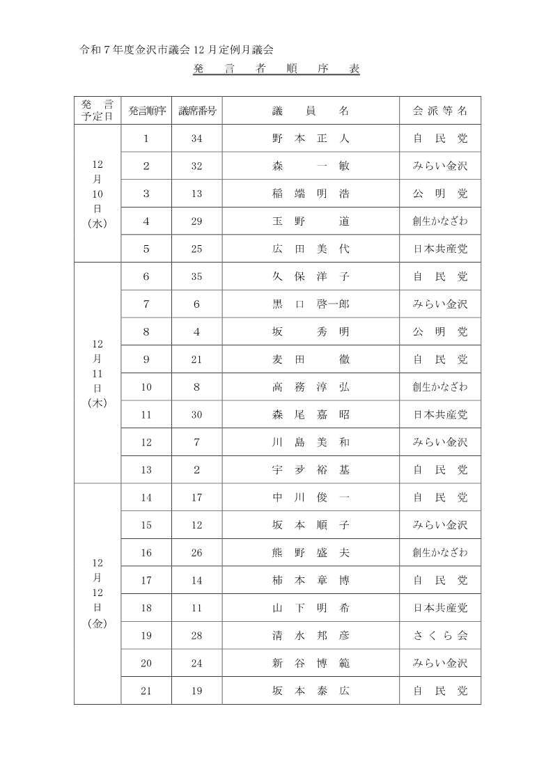 発言者一覧 Tweet 発言者一覧 この記事に関するお問い合わせ先 議会事務局議事調査課郵便番号:920-8577住所:金沢市広坂1丁目1番1号電話番号:076-220-2392ファックス番号:076-260-7190お問い合わせフォーム