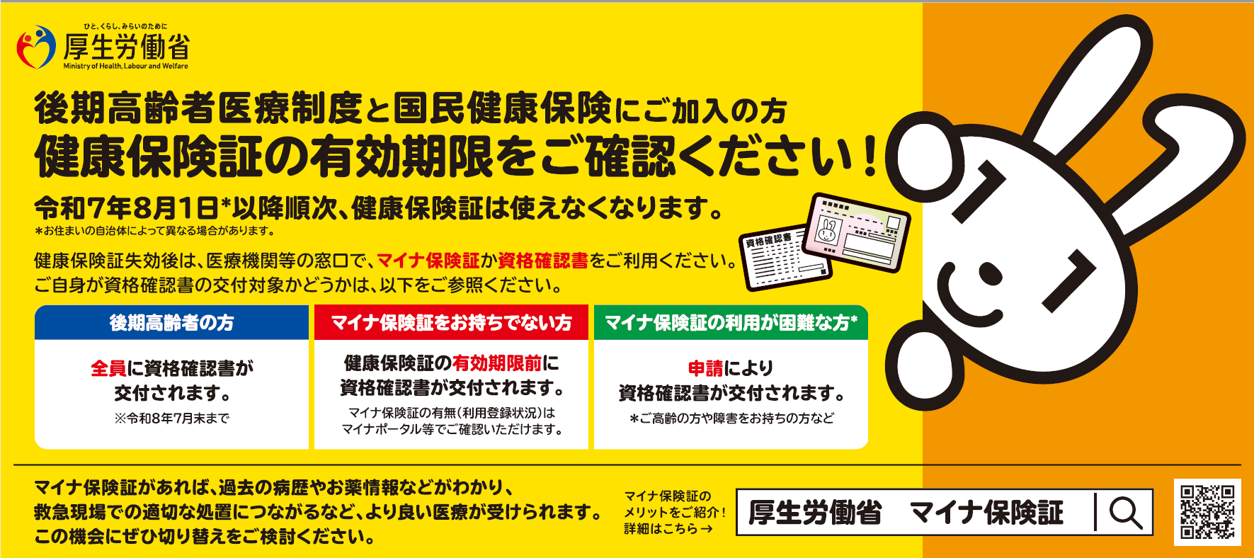 マイナ保険証を保有していない方には、令和7年7月14日に、「資格確認書」を郵送で交付しました。