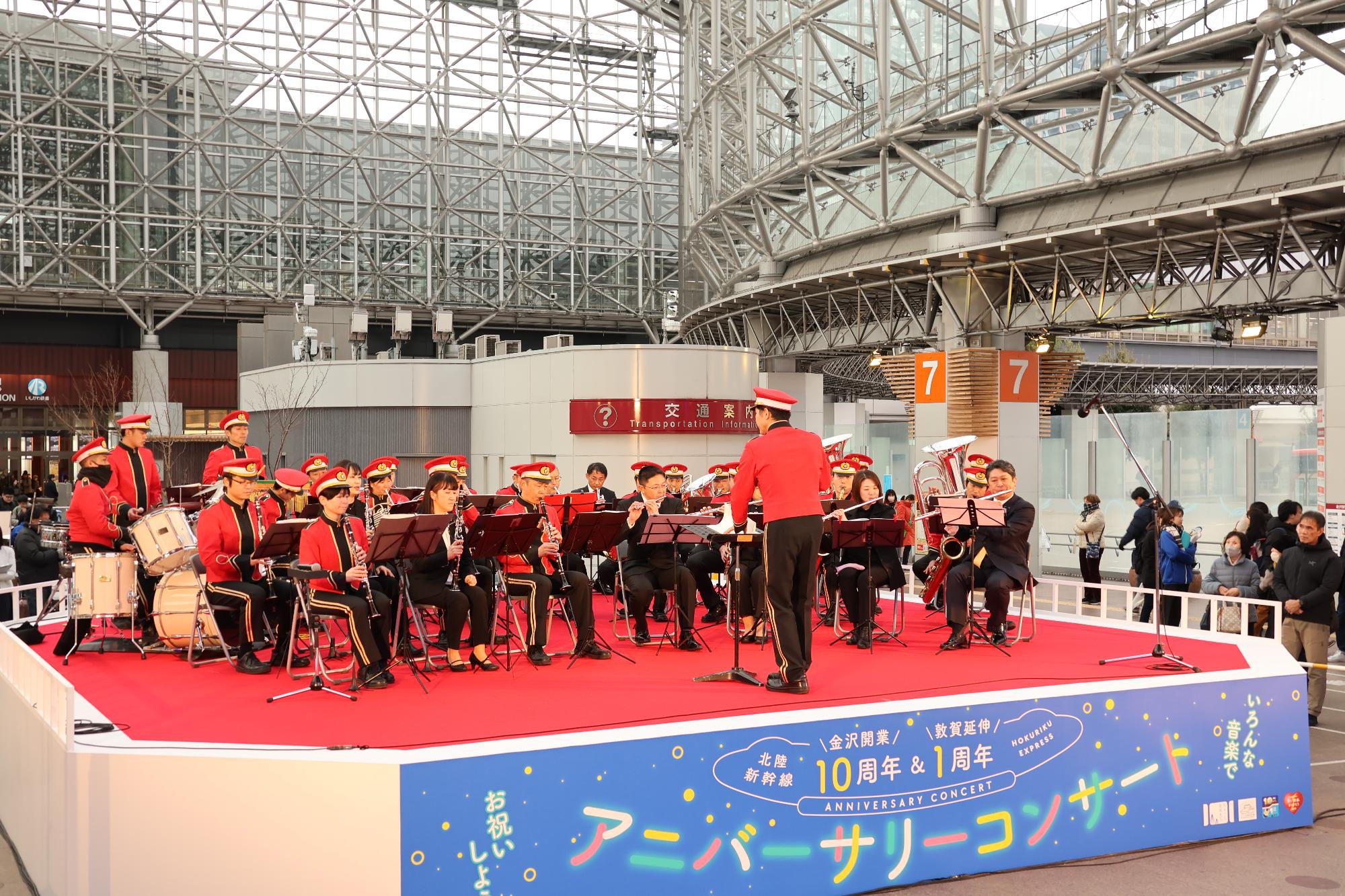 3月15日(土曜日)、金沢駅東広場にて「北陸新幹線金沢開業10周年」および「金沢-敦賀間開業1周年」を記念して、アニバーサリーコンサートが開催されました。