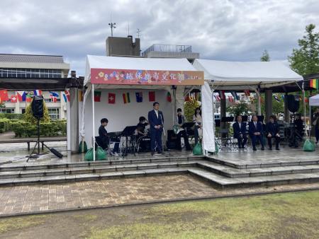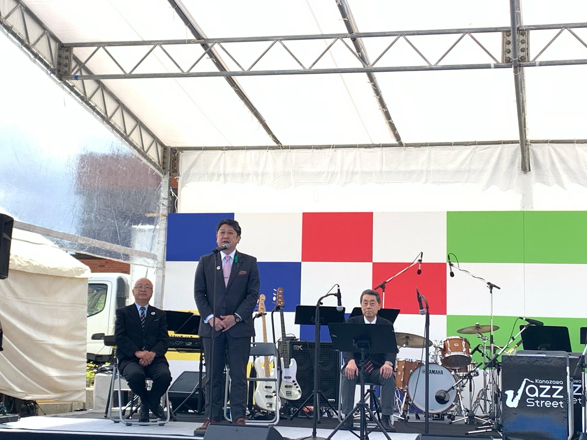 姉妹都市公園を会場とする初めての大型イベント「かなざわ姉妹都市文化祭」を開催し、あいさつをしました。