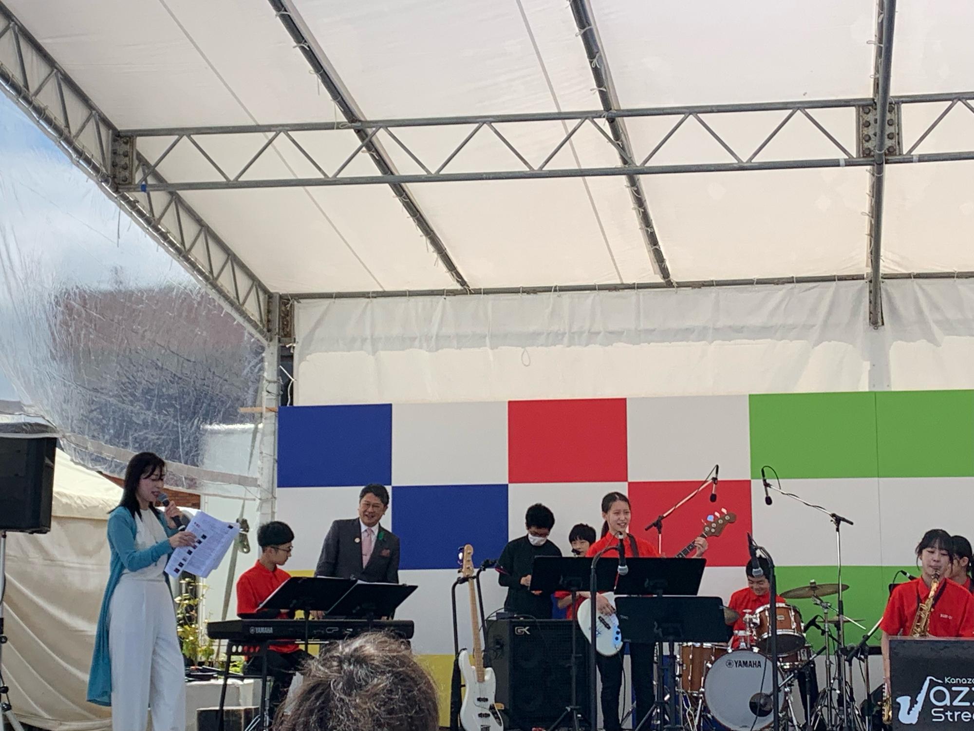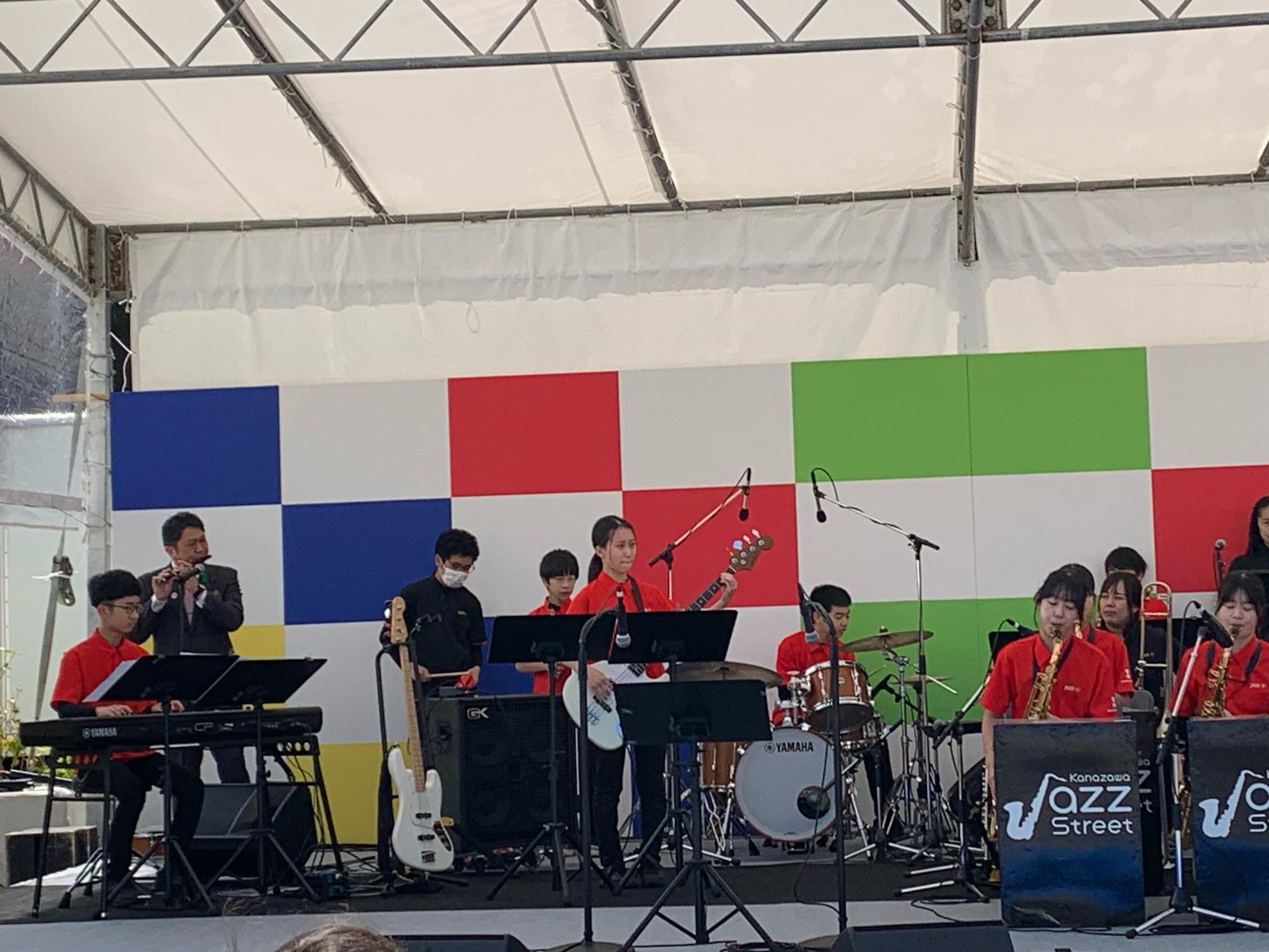 開会の挨拶の後、金沢ジュニアジャズオーケストラJAZZ-21の皆様とピッコロで演奏を行いました。