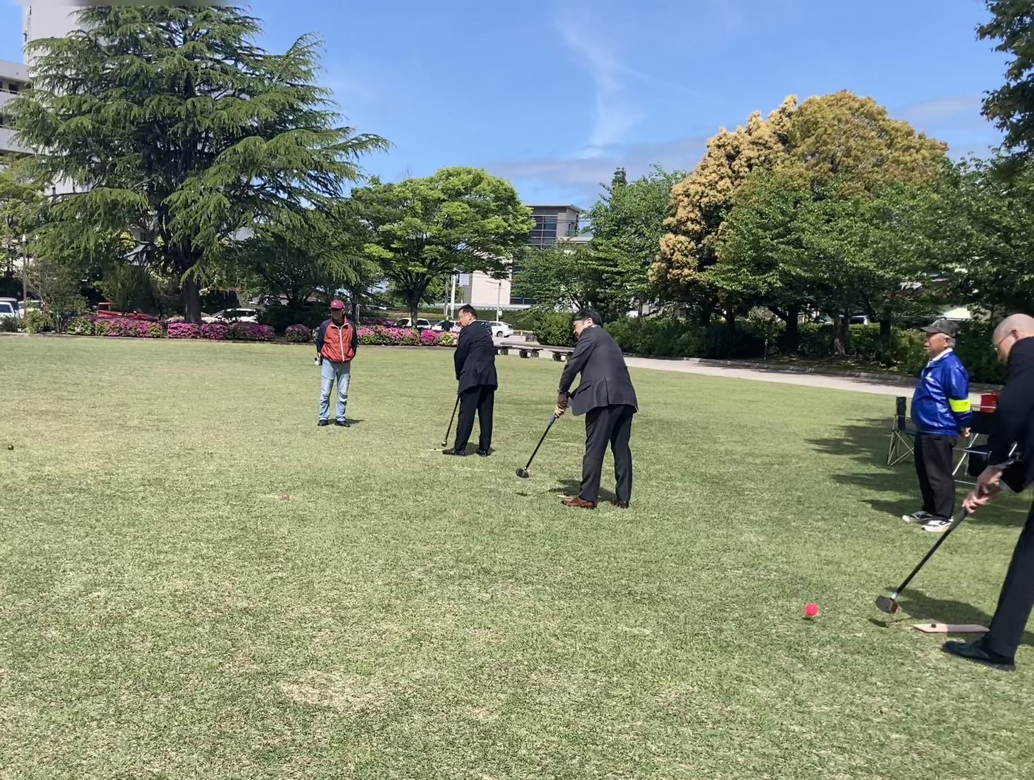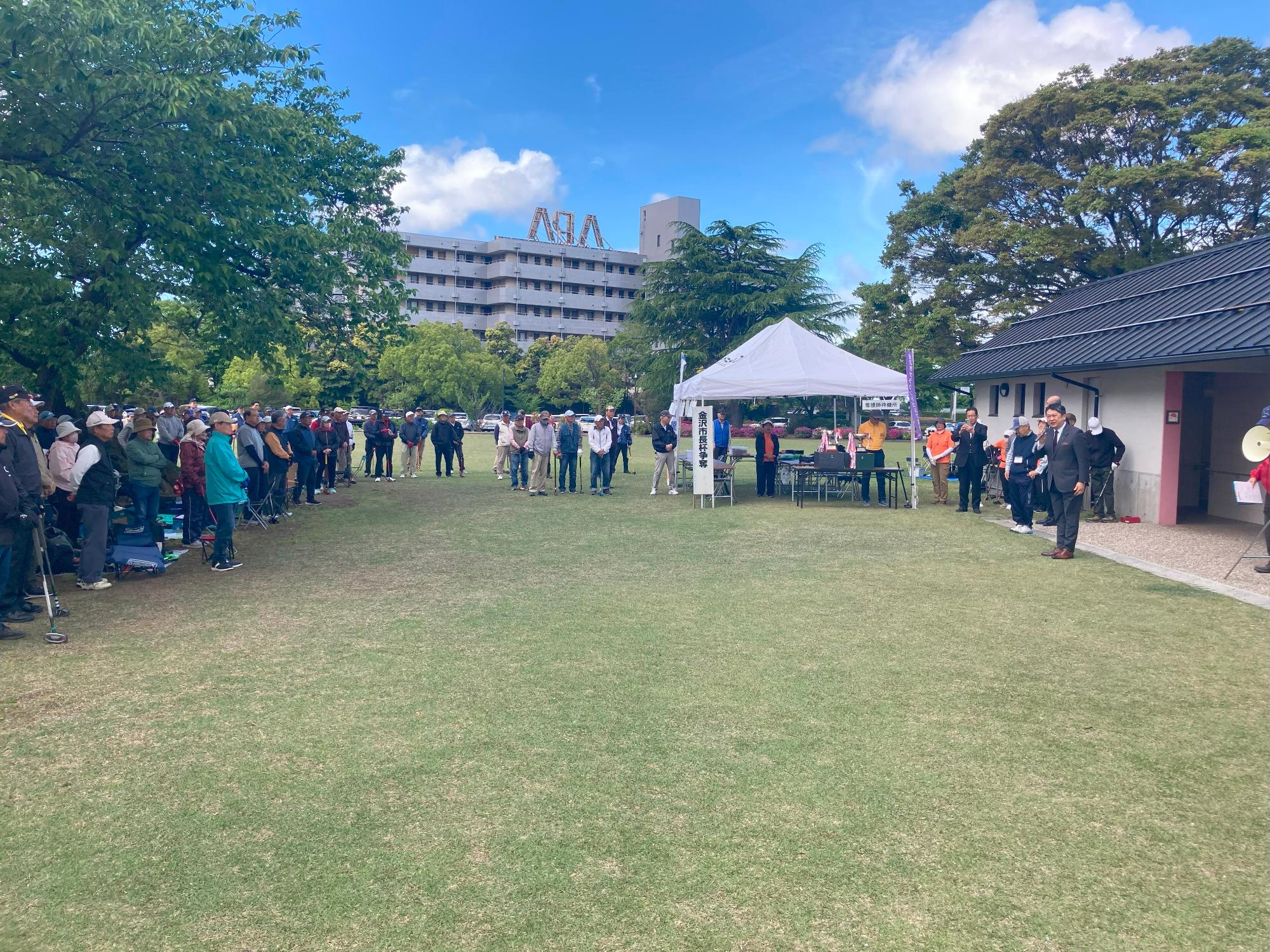 金沢市長杯グラウンド・ゴルフ大会開会式であいさつをし、始球式を行いました。