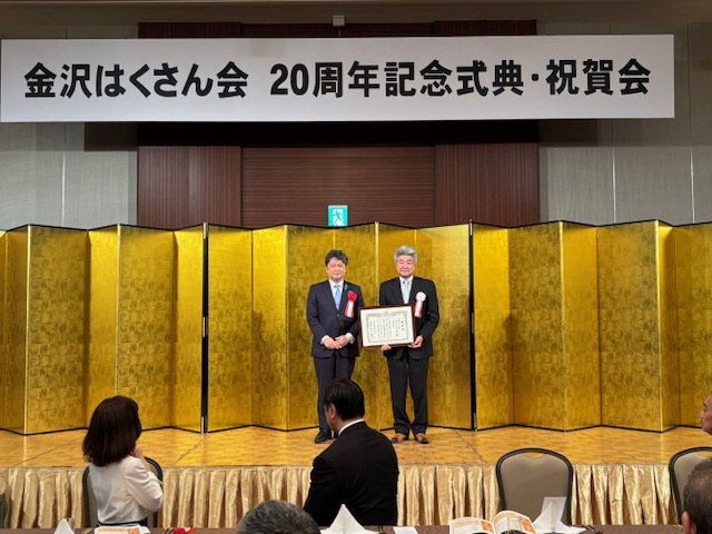 金沢はくさん会の20周年記念事業として、本市の中小企業振興のため、寄附をいただきましたので、感謝状を贈呈しました。