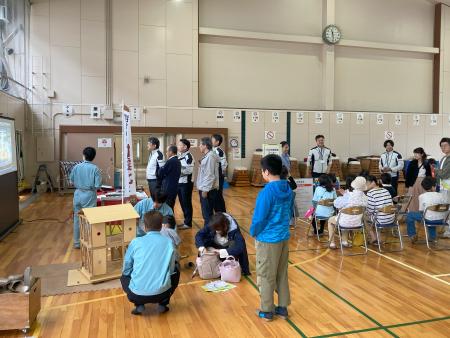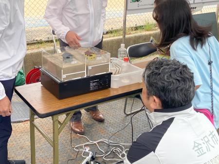 能登半島地震で液状化被害を受けたこの地区で開始した実証実験の見学、模型を使った液状化実験や耐震実験など、地震や防災について学べる様々なコーナーを設けました。