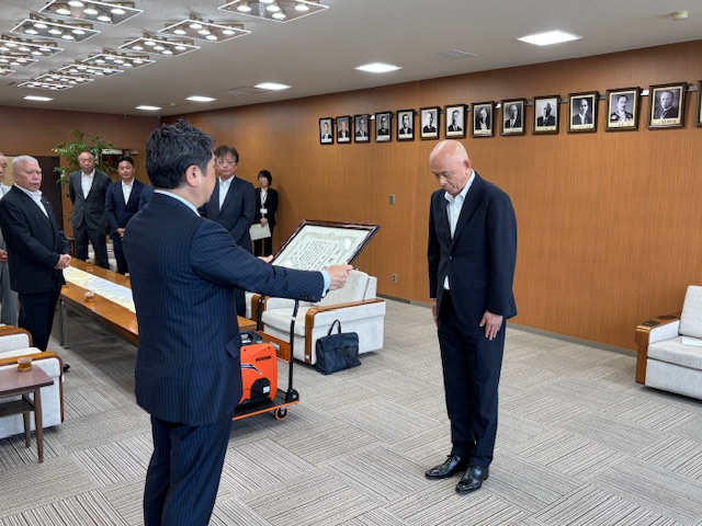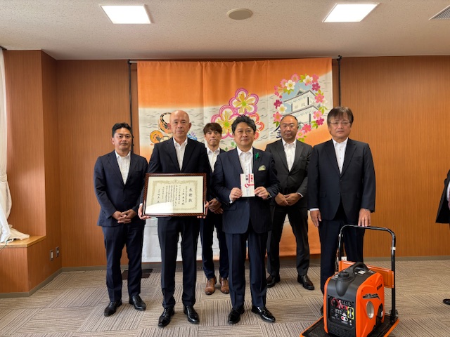 石川県造園緑化建設協会から公園における防災力向上のため、インバーター発電機4台を寄附いただきましたことに対し、感謝状を贈呈しました。