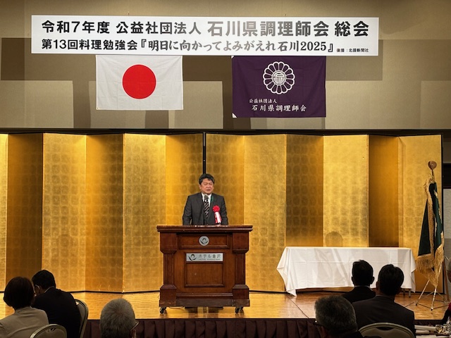 石川県調理師会の料理勉強会にお招き頂きあいさつをしました。