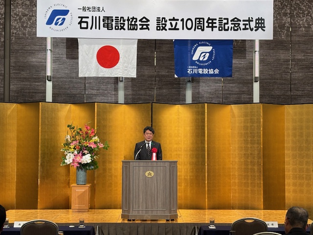 石川電設協会設立10周年記念式典に出席し、あいさつしました。