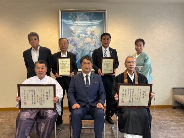 市指定文化財指定書2件及び市認定歴史文化遺産(地域のお宝)認定証2件の交付式を行いました。