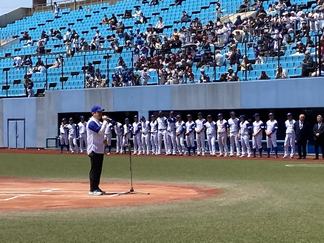 石川ミリオンスターズの開幕戦であいさつをしました。開幕に合わせて、今シーズンの応援横断幕を贈呈しました。