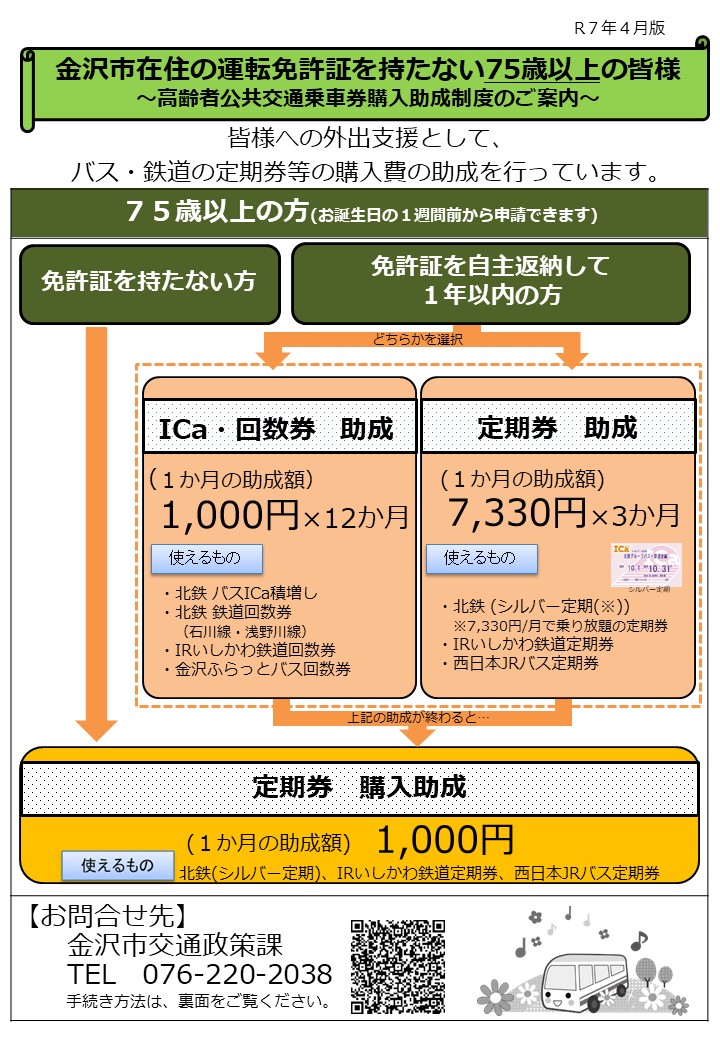 金沢市在住の運転免許証を持たない高齢者の方へ(チラシ) (PDFファイル: 288.0KB)