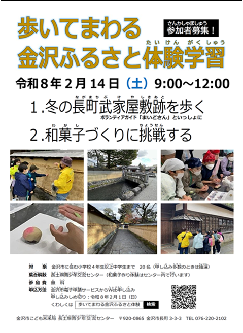 2月「歩いてまわる金沢ふるさと体験学習」 1/6(火曜日)より受付開始!