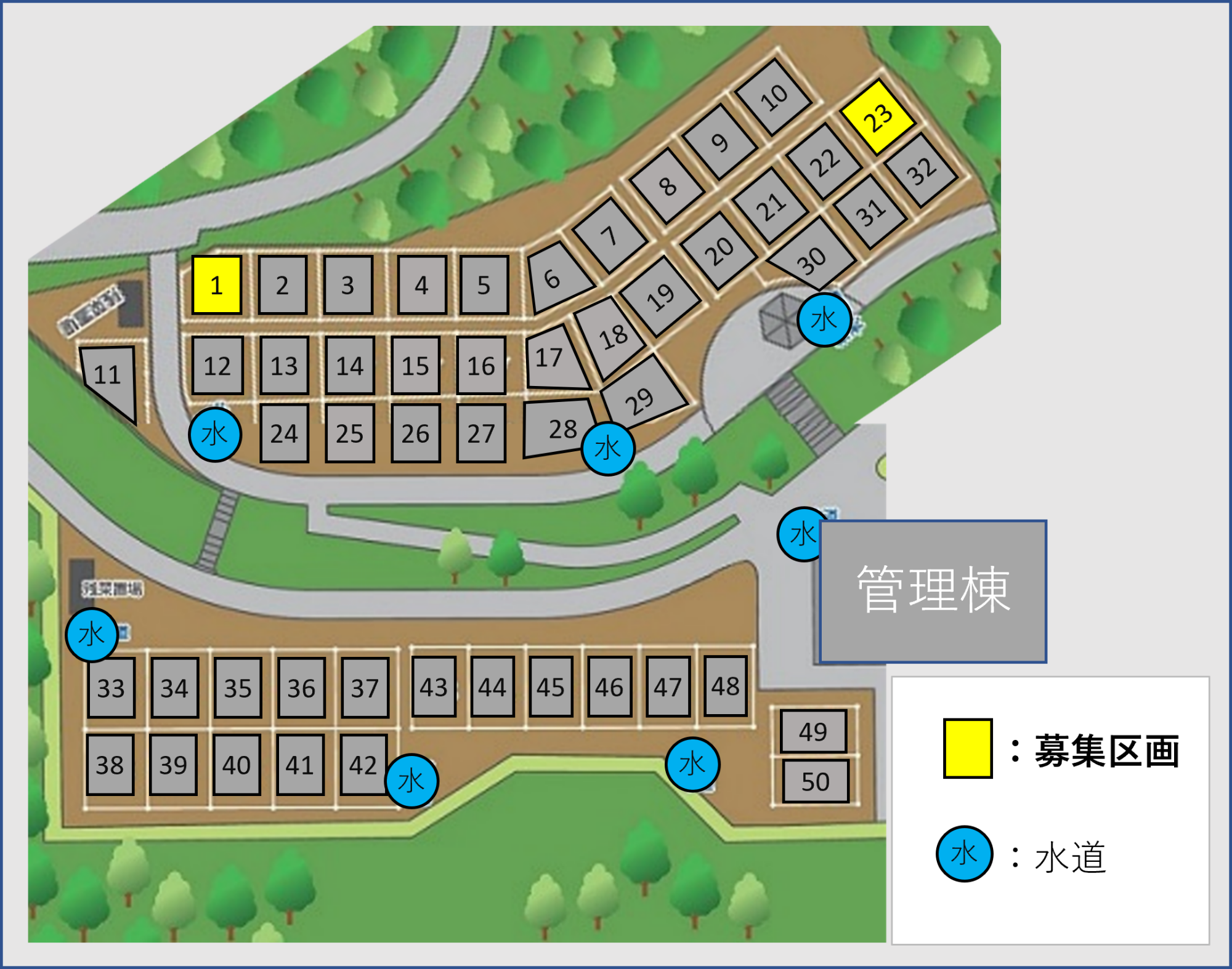 全50区画 ― 1区画:約36平方メートル |