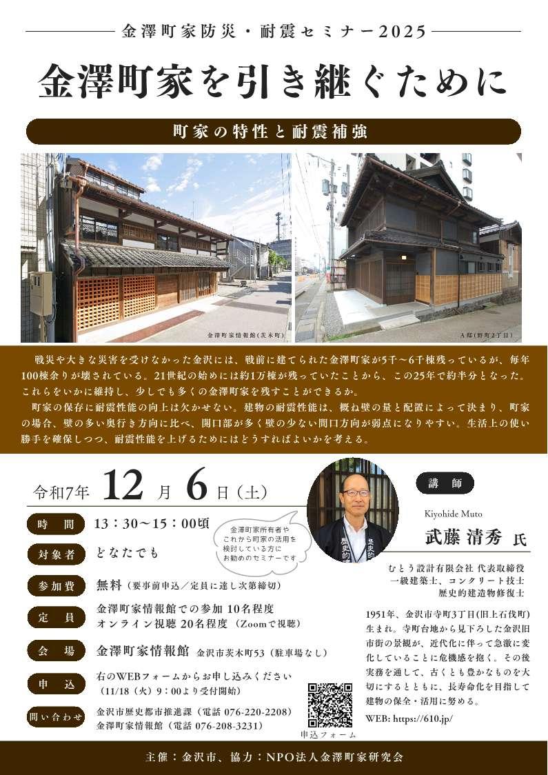 金澤町家防災・耐震セミナー 第2回「金澤町家を引き継ぐために」