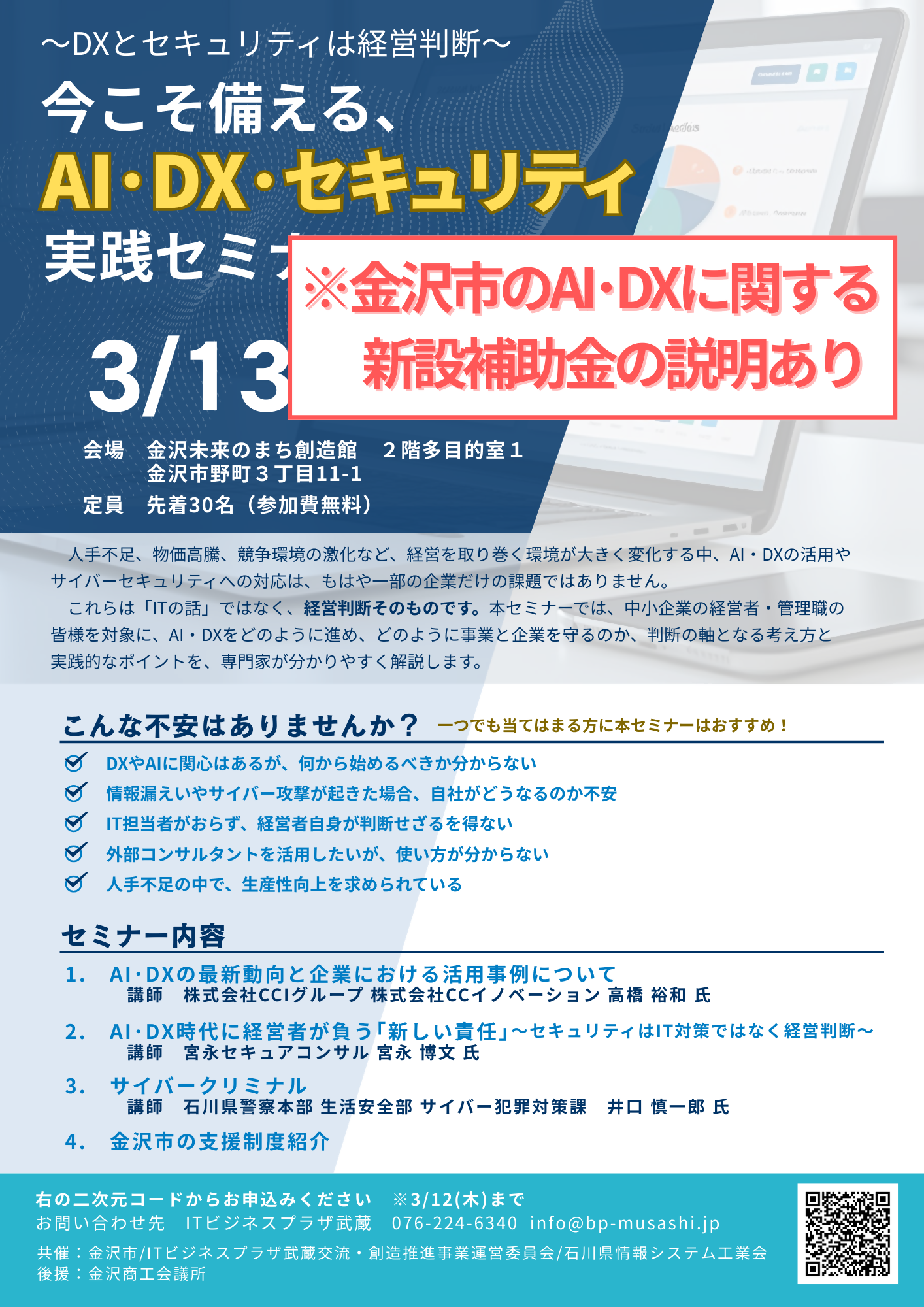 当日は、金沢市が新設予定であるAI・DXの導入に関する補助金についてもご紹介します。