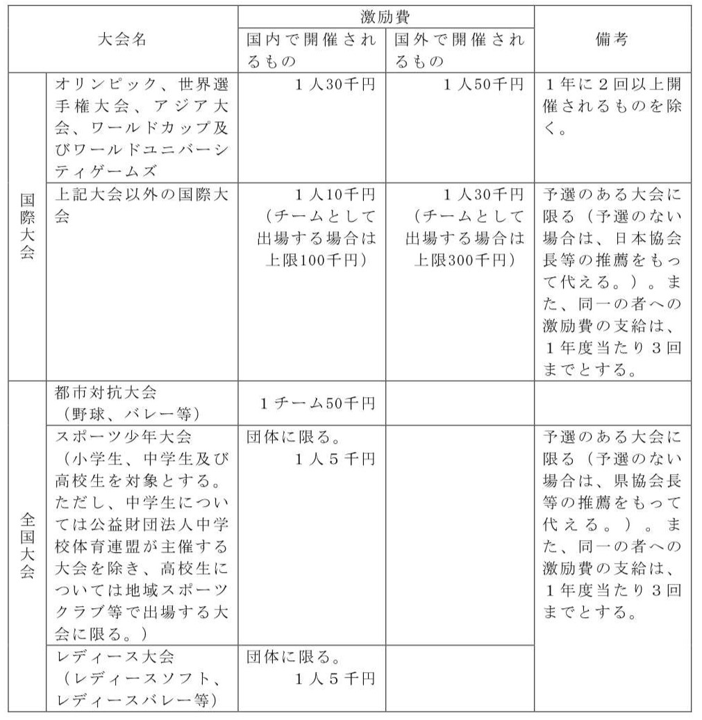 国際スポーツ大会及び全国スポーツ大会等出場に伴う激励費取扱い基準