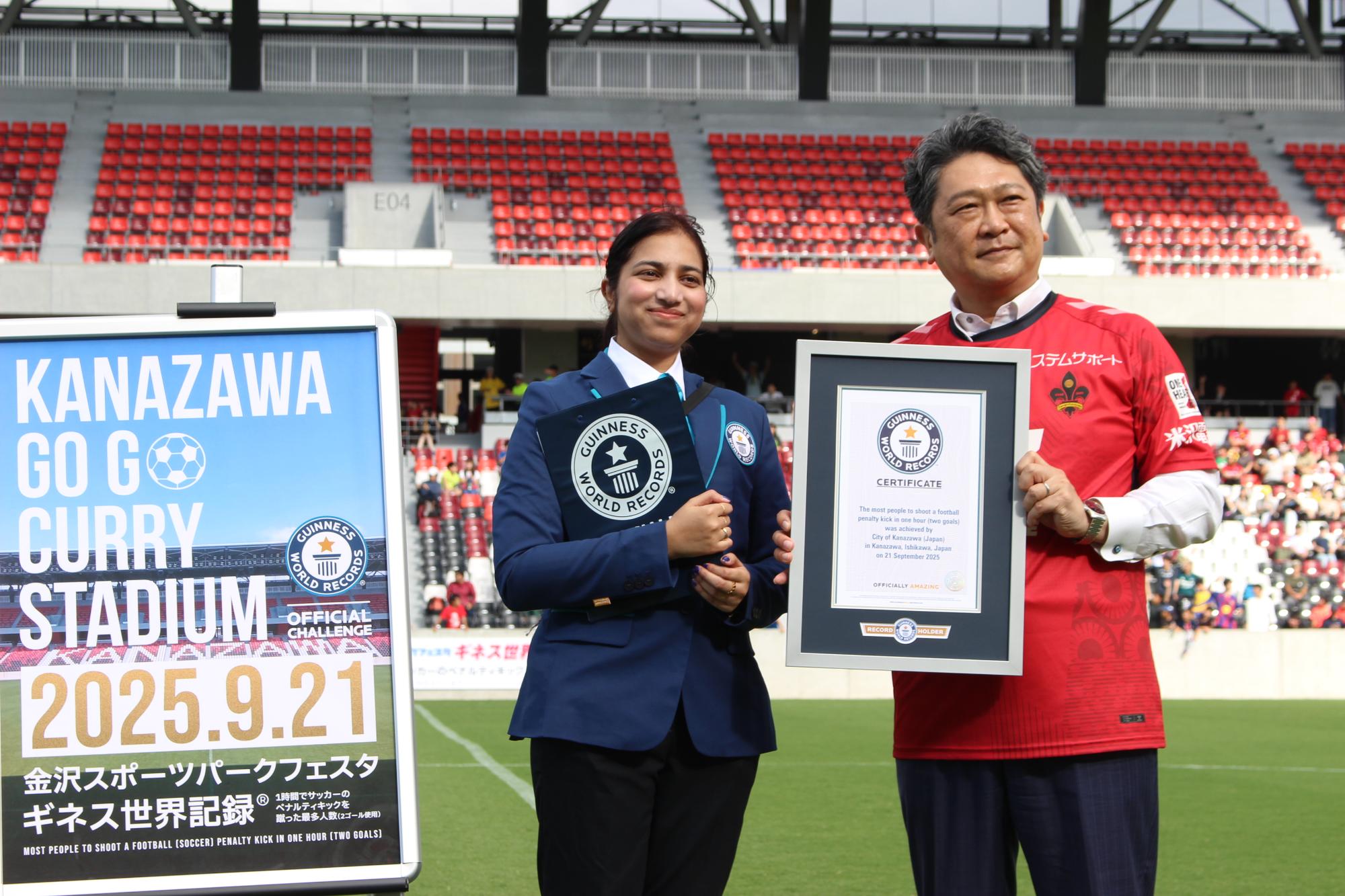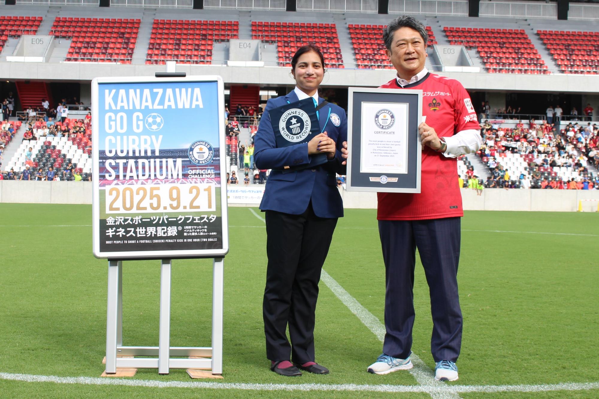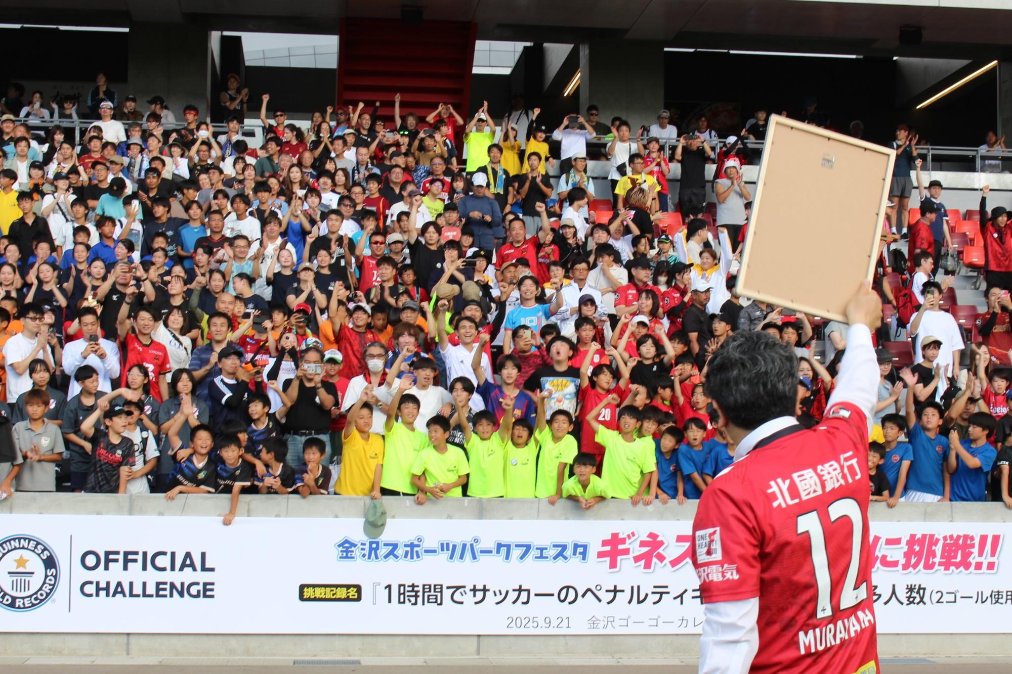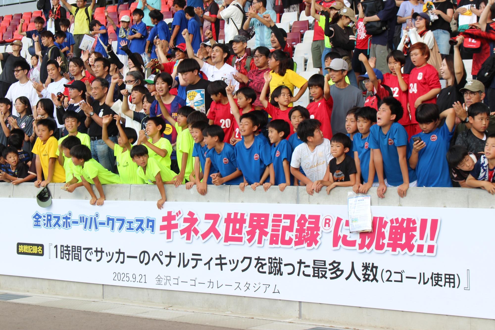 子供から大人まで気軽に様々なスポーツを楽しめるイベント「金沢スポーツパークフェスタ」を開催!そのメインイベントとして、金沢ゴーゴーカレースタジアムでサッカーのギネス世界記録™「1時間でサッカーのペナルティキックを蹴った最多人数(2ゴール使用)」に挑戦しました!