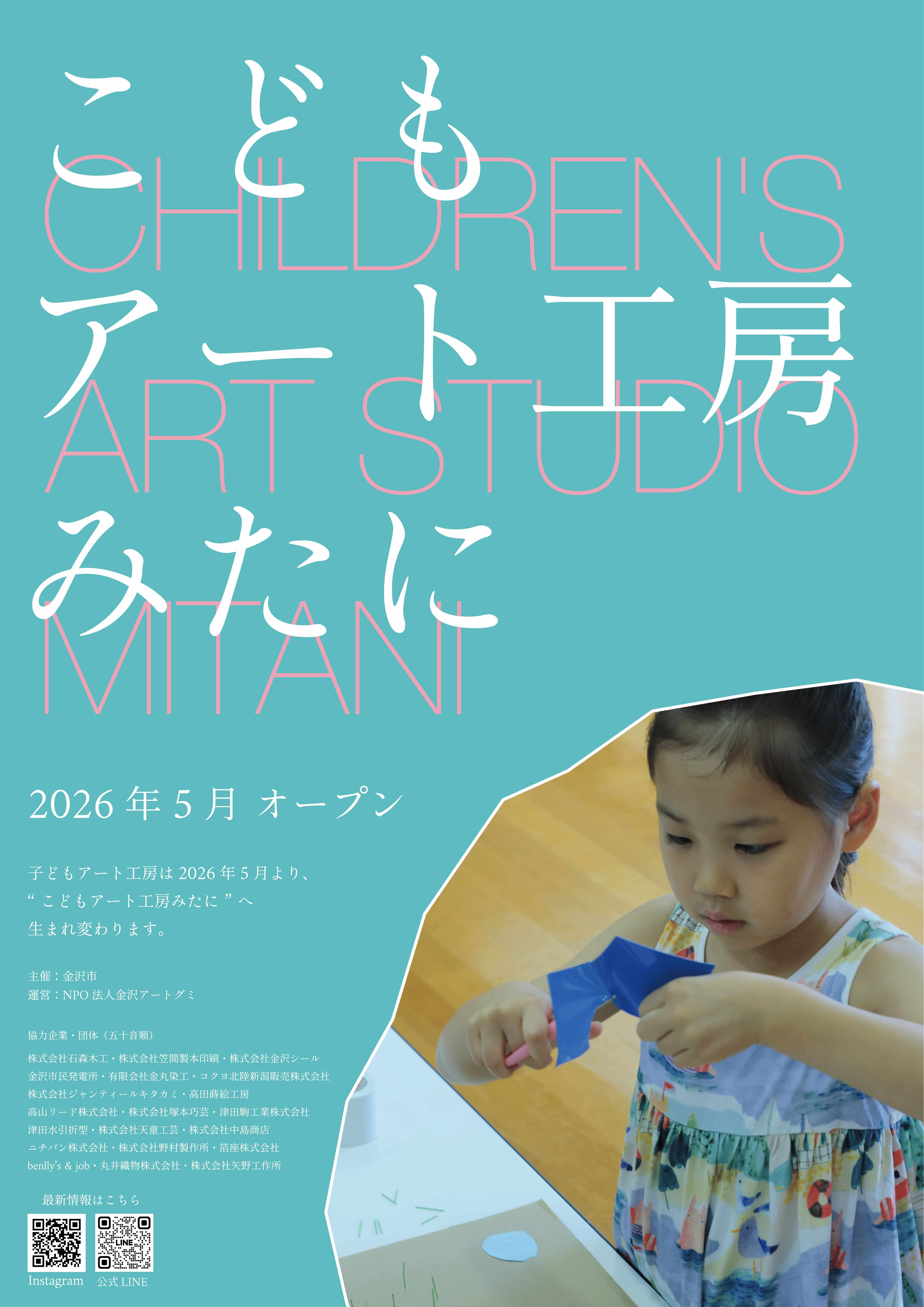 こどもアート工房みたにの中心にいるのは常にこどもたち。これからも、こどもたちがアートに触れ、未知のものと出会い、自由な心で表現できる。そんな場所を目指していきます。